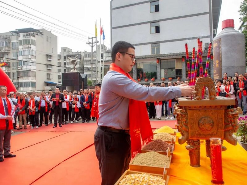 上午10時18分,祭酒神活動正式開始,福建雙龍戲珠酒業(yè)有限公司董事長黃德鋒、總經(jīng)理黃盛堯帶領(lǐng)公司領(lǐng)導向酒神像上香祈福。