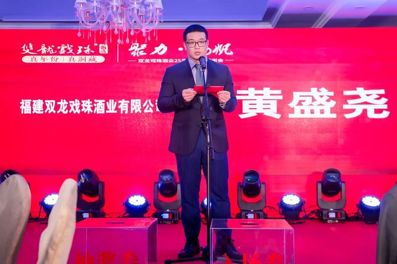 12月6日晚,雙龍戲珠酒業(yè)25周年廠慶答謝宴(政和站)在南平市政和縣武夷明珠大酒店隆重舉行,福建雙龍戲珠酒業(yè)有限公司總經(jīng)理黃盛堯、政和縣九久貿(mào)易商行總經(jīng)理黃火出席并致辭。