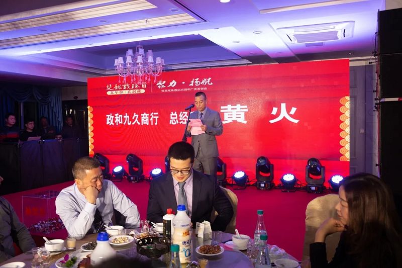 九久貿(mào)易商行總經(jīng)理黃火代表各位合作商和廣大消費者對雙龍戲珠酒業(yè)25周年廠慶表示祝賀。