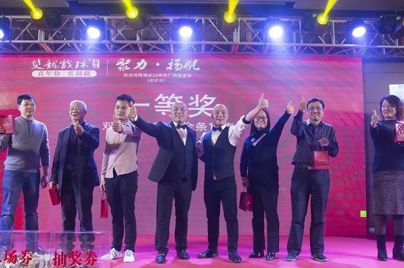 精彩紛呈的文藝表演搭配激動人心的抽獎環(huán)節(jié),讓到場的建甌人民感受到雙龍戲珠酒業(yè)在這個冬天帶來的激情與熱情。隨著本場活動特等獎(49999元現金)得主的誕生,現場氛圍瞬間達到最高潮。值得一提的是,本場活動共設特等獎兩名,以回饋建甌人民對于雙龍戲珠酒業(yè)本次廠慶活動的大力支持。