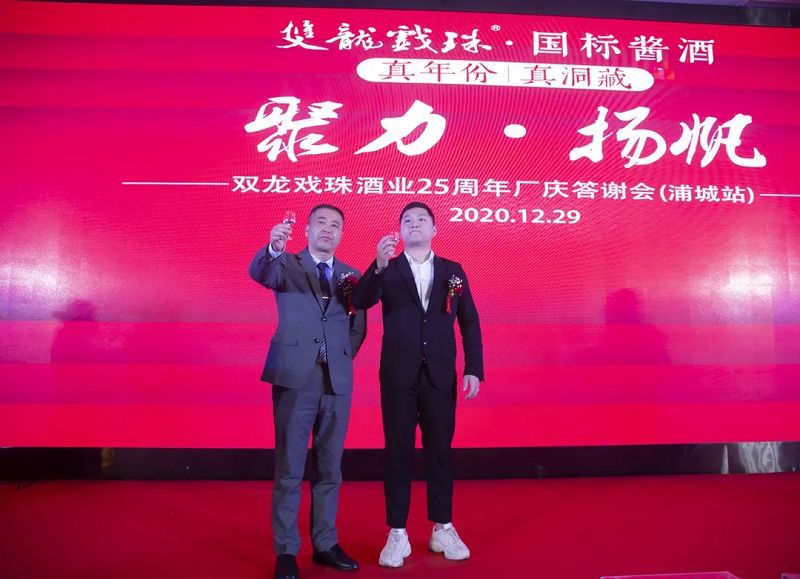 12月29日,雙龍戲珠酒業(yè)25周年廠慶答謝宴(浦城站)在浦城縣浦城大酒店隆重舉行。雙龍戲珠酒業(yè)營銷總監(jiān)黃兆茂、浦城縣盛興食品商行總經理胡葉楠出席活動并致辭。