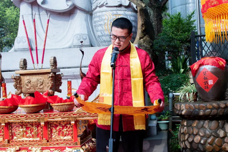 隨著吉時(shí)到來,現(xiàn)場人頭攢動(dòng)、鑼鼓震天,祭祀儀式正式開始。大典上,雙龍戲珠總經(jīng)理黃盛堯誦讀祭文,隨后,雙龍戲珠酒業(yè)董事長黃德鋒帶領(lǐng)公司高管凈手、上香祭拜先祖,以虔誠之心祈愿風(fēng)調(diào)雨順、五谷豐登、國泰民安。