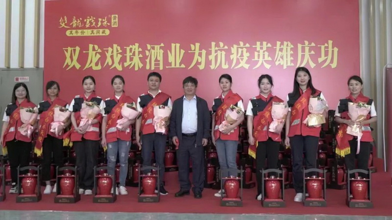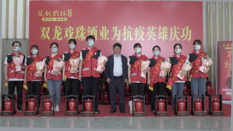 △雙龍戲珠酒業(yè)董事長黃德鋒為抗疫英雄慶功