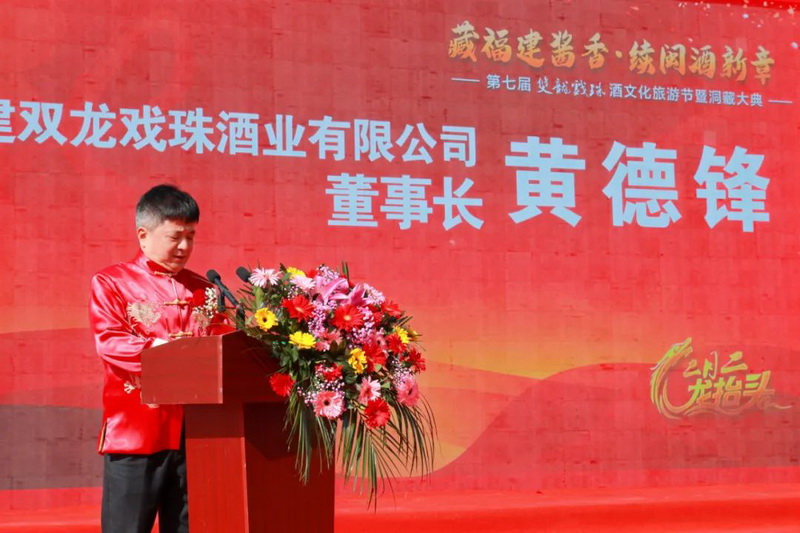 隨著領導嘉賓完成簽到、入座,“第七屆雙龍戲珠酒文化旅游節(jié)暨洞藏大典”正式開幕。福建雙龍戲珠酒業(yè)有限公司董事長黃德鋒首先致開幕辭,黃董事長表示,我們今后發(fā)展的道路會遇到這樣、那樣的困難。但是我們用至誠真心,釀最好美酒的初心不變,我們與參與者共享發(fā)展成果的初心不變,我們公司發(fā)展對社會有利的初心不變。