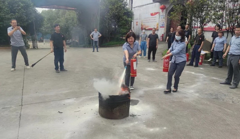 講座培訓后,在老廠雙龍洞前開展消防演練、桐源基地(新廠)污水處理站旁開展有限空間事故專項應急預案演練。從發(fā)現(xiàn)火情、拉響警報、疏散人員、撲救初期火災、疏散引導、安全警戒,整個疏散過程反應迅速、安全有序、配合默契,達到了預期目的。