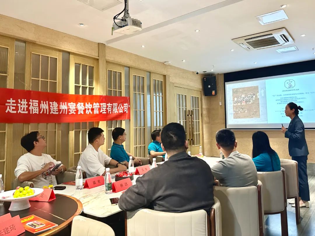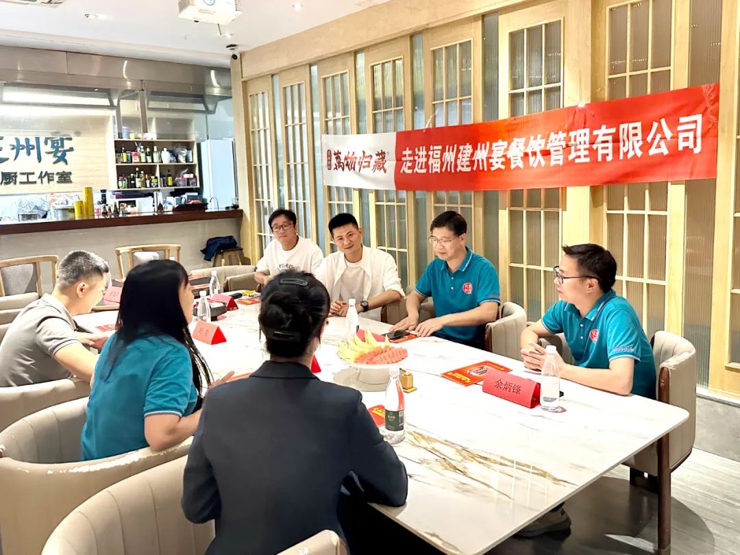 福州建州宴餐飲管理有限公司創(chuàng)始人吳烽對雙龍戲珠酒業(yè)一行的到來表示歡迎,他表示,與雙龍戲珠酒業(yè)的戰(zhàn)略合作充滿了期待,將秉持資源共享、優(yōu)勢互補的原則,通過各自在行業(yè)中的優(yōu)勢,打通高端圈層,進行更深層次的務(wù)實合作,在謀求攜手共贏的道路上行穩(wěn)致遠。隨后帶領(lǐng)大家一起參觀了解建州宴企業(yè),座談會上,向大家介紹了建州宴企業(yè)的發(fā)展歷程、業(yè)務(wù)范圍、企業(yè)規(guī)模、企業(yè)文化等情況。