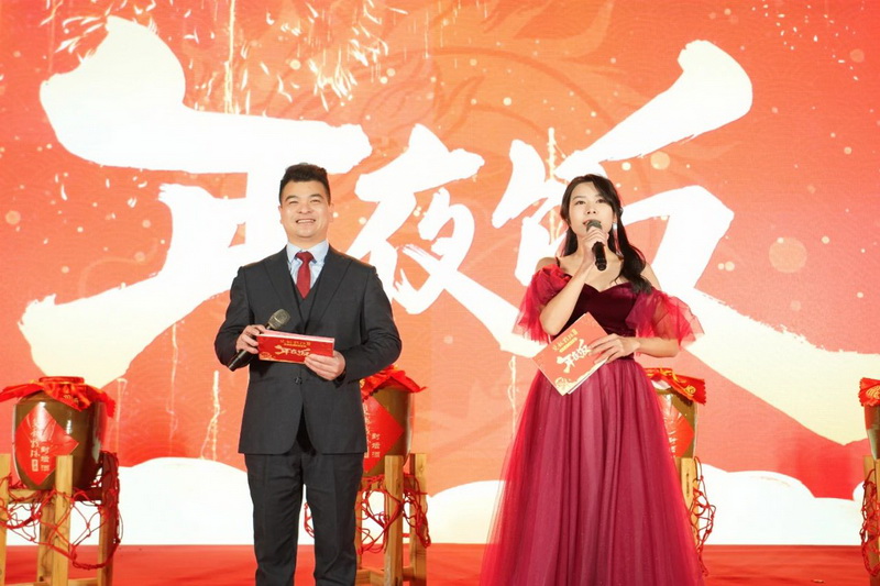相聚的時(shí)光令人難忘,雙龍戲珠酒業(yè)年夜飯?jiān)跓熁ū硌莸臍夥罩新湎箩∧唬p龍人們滿懷期望,攜手共赴2024新征程。