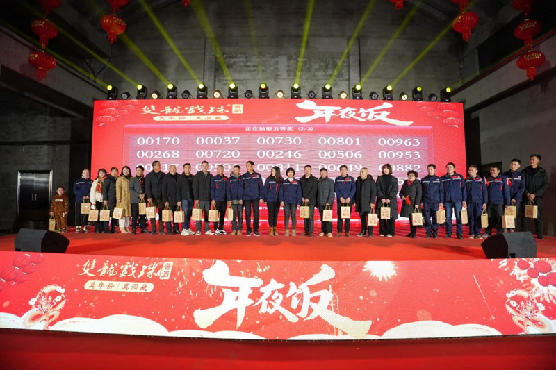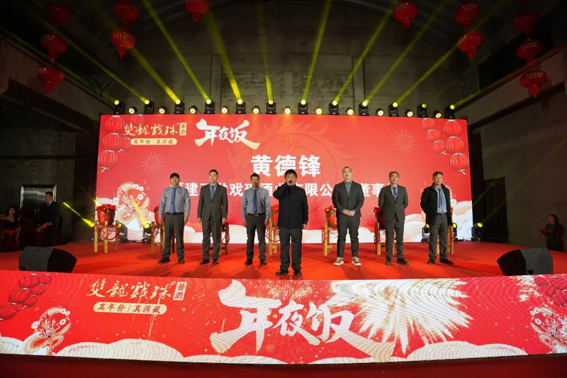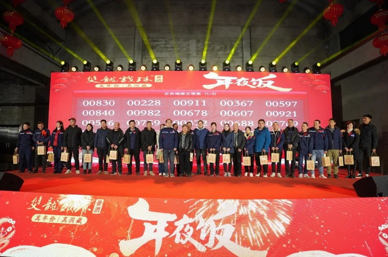 雙龍戲珠酒業(yè)董事長(zhǎng)黃德鋒在致辭中對(duì)全體雙龍人一年來(lái)的辛勤付出表示感謝,并向大家致以新年的美好祝愿。雙龍戲珠酒業(yè)發(fā)展到現(xiàn)在是全體員工一起努力的結(jié)果,今晚在桐源基地舉辦年夜飯活動(dòng),與大家一同見(jiàn)證雙龍戲珠發(fā)展的成果。