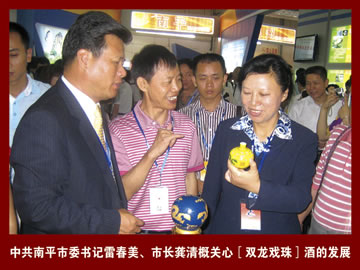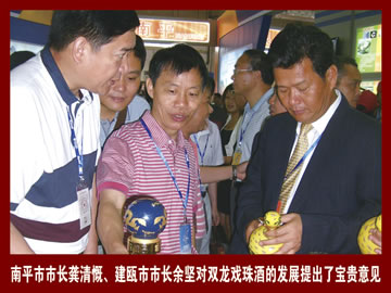 2009年6月18日,雙龍戲珠酒應(yīng)邀參加了第七屆中國.海峽項(xiàng)目成果交易會(huì),與會(huì)期間受到了各級(jí)領(lǐng)導(dǎo)高度評價(jià),并對雙龍戲珠酒未來的發(fā)展提出了寶貴的意見。