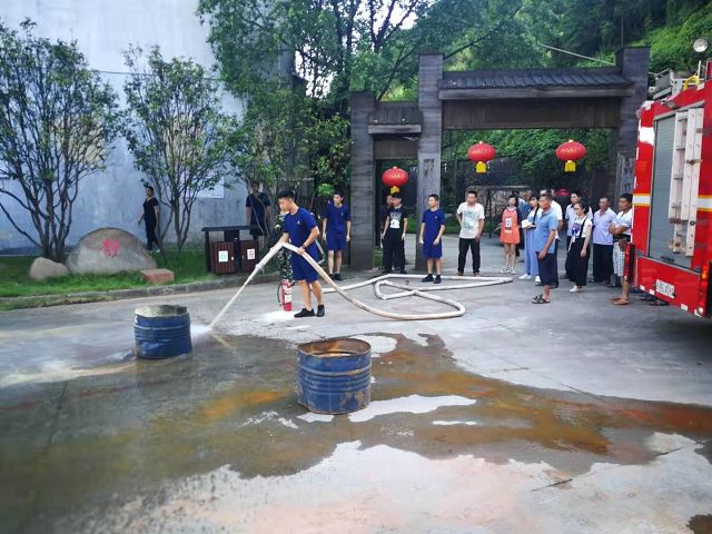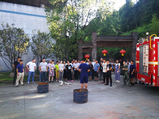 建甌消防支隊于2019年7月18日下午15點在雙龍戲珠酒業(yè)廠區(qū)內(nèi)指揮廠區(qū)員工做消防演習(xí)動員。