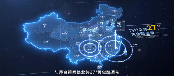 建甌生態(tài)環(huán)境與茅臺(tái)鎮(zhèn)地處北緯27°黃金釀酒帶。無(wú)霜期長(zhǎng)、溫差小、高山環(huán)抱,地形仿佛就是個(gè)巨大的酒甑;雨熱同季的氣候,使得建甌的空氣和土壤最適宜釀酒所需的微生物生長(zhǎng)。
